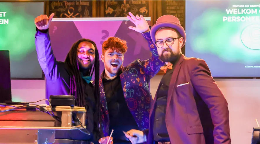 Onze professionele quizmasters brengen energie, humor en interactie in elke ronde. Zij zijn de sleutelfactor die de pubquiz voor bedrijven zo meeslepend maakt. Met hun ervaring weten ze precies hoe ze collega’s in teams uitdagen, aan het lachen maken en enthousiast houden.